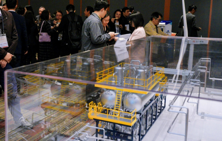 ▲现场设有以新能源及可持续发展为主题的产品及技术展示区,展出新能源汽、充电桩、绿出及低碳排放等产品、技术及解决案