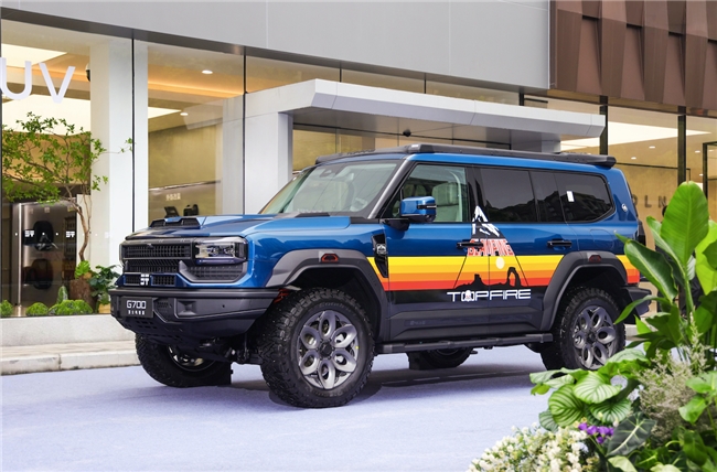 与此同时,多款G700官方定制车型同台亮相,构成纵横史上最完整、最强悍的官方改装阵容。G700顶火鸣镝版以鸣镝锋芒美学为设计核心,搭配拓野强化底盘、定制百路驰KO3、20英寸航空铝锻造轮毂、科曼高性能氮气减震与顶火鸣镝顶架系统,打造高端越野专属气场。